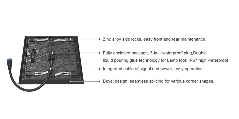鋅合金側(cè)鎖,信號線電源線一體化,斜角設(shè)計,實現(xiàn)轉(zhuǎn)角設(shè)計無縫拼接